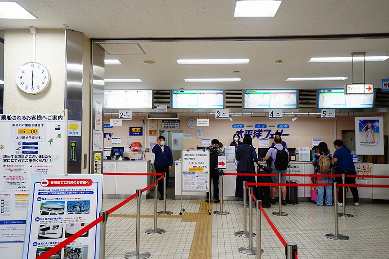 フェリーターミナルに到着。普段は空港に慣れているので、このフェリーターミナルのチェックインカウンターはだいぶ安っぽく見えちゃいますね。