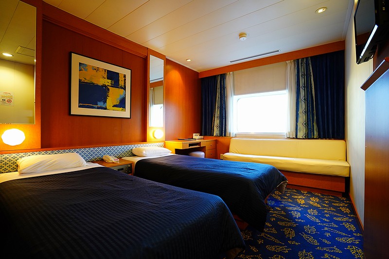 特等の左舷側客室です。なかなかのお部屋です。いやはや、完全にビジネスホテルですね。