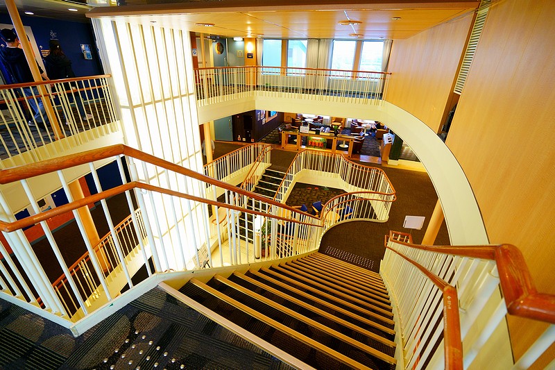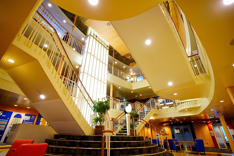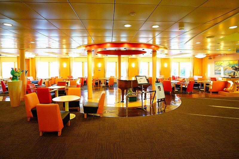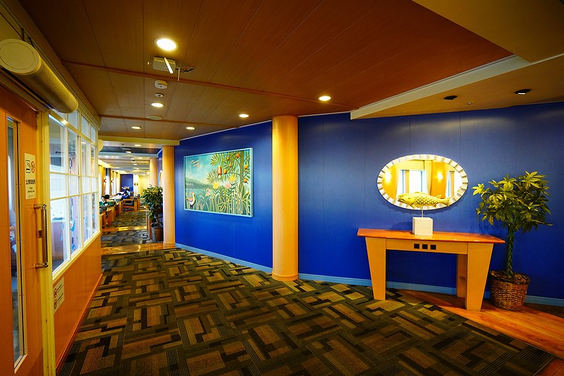 この5階部分から上に上がる階段部分が一番の見どころですかね?7階まで吹き抜けの豪華仕様となっています。なんちゃらプリセンスとか巷の豪華客船とまでは行きませんが、船旅初心者にはぴったりのグレードだと感じました。
