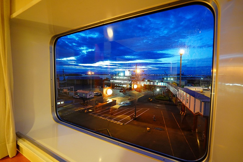 出航は部屋から見届けました。窓からの景色も良好です。常に左側が陸地となるため、左側の客室を予約するのがよいと思います。なので右舷側は人気がありません。部屋指定の際に左と右の差が顕著に分かります。