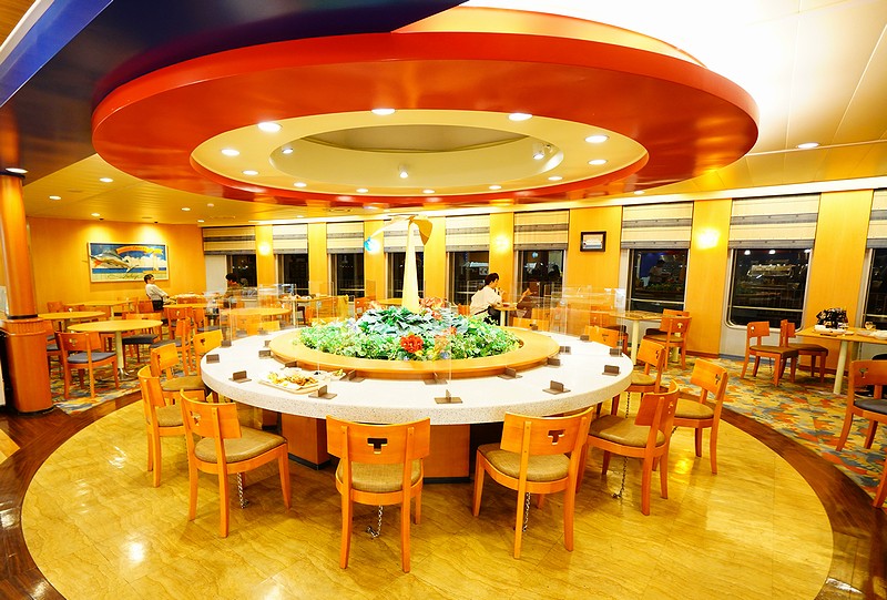 完全に無銭飲食できちゃいますね…。やや不安にもなりましたが、まぁスタッフ一人を入口に付けるのもコスト掛かりますし、乗客は外へ逃げられませんし、閉鎖空間の船だからこそ信用で成り立っているのだと思いたいです。