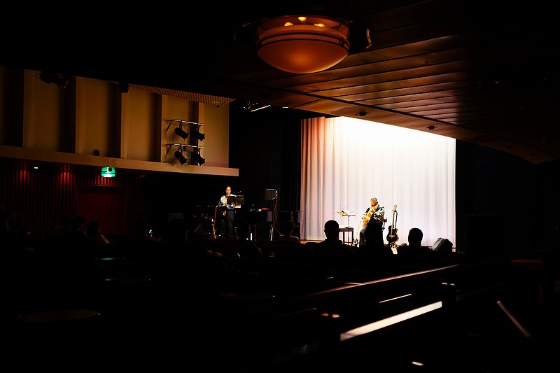 (あまり売れていないと思われる)ミュージシャンのお二方が登場し、サックス、ピアノ、ギターの生演奏を聴くことができました(シンセサイザーも入っています)。やはり楽器の生音っていいですね。船の中とあって何だかそれだけで気分が盛り上がりました。