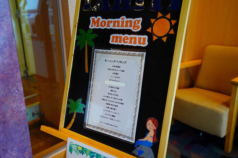 朝のバイキングメニュー例。一応メニューを見るだけ見て決めました。