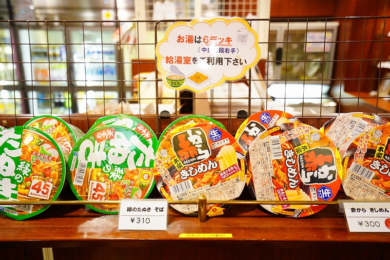 カップ麺も色々と取り揃えていまして、レストランでご飯を食べなくてもお腹は満たせます。が、高いです。