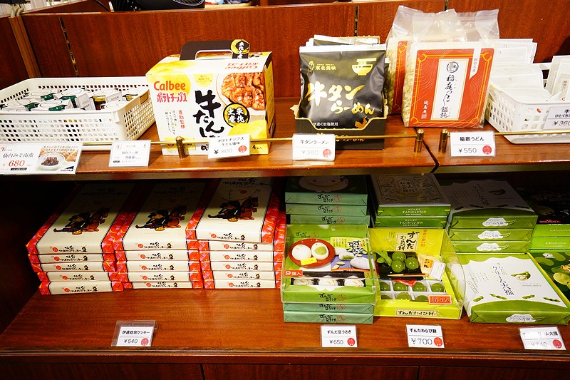 仙台のお土産コーナー。もちろん名古屋のお土産コーナーもあって、それぞれの就航地のお土産は揃っています。その他太平洋フェリーのグッズなんかもあって見ているだけで結構楽しめました。